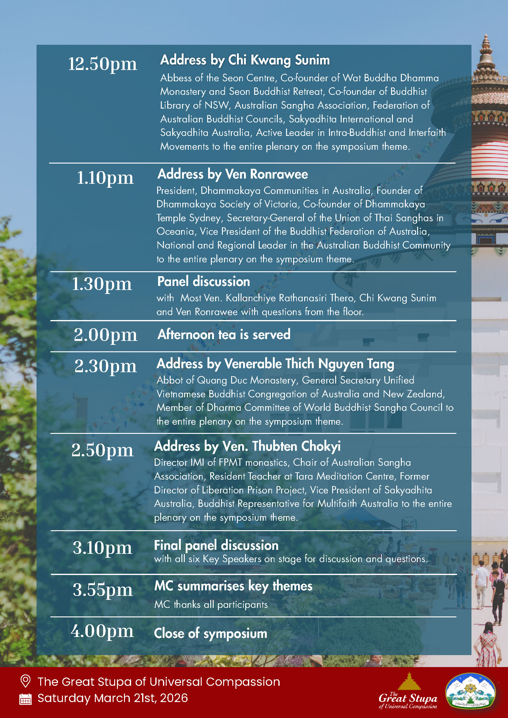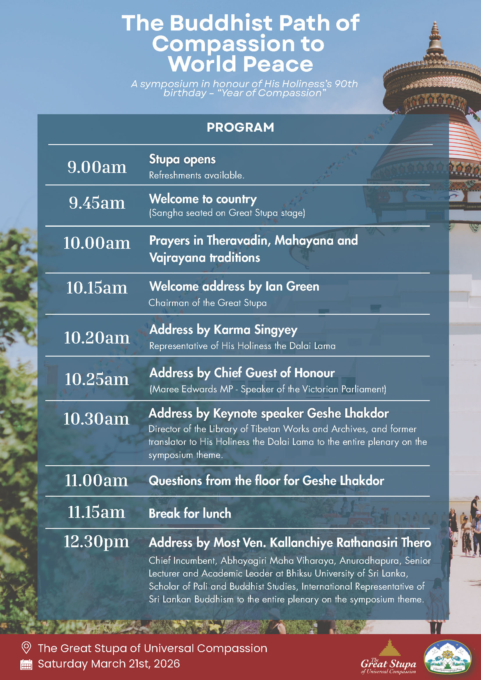 Saturday 21st March 2026 @ The Great Stupa of Universal Compassion